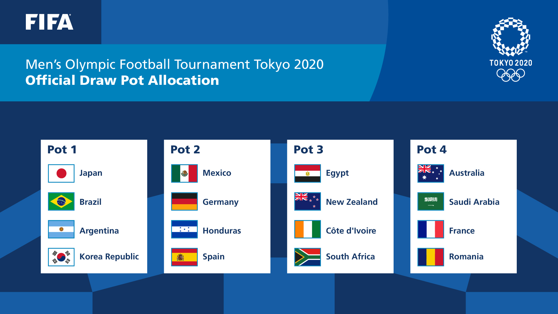 Fifa Com On Twitter The 16 Men S Olympic Football Tournament Teams Have Been Ranked And Allocated Pots For Wednesday S Draw Olympics Olympicfootball Tokyo2020 Https T Co Cacmvf2ney Https T Co Jhzo3acud5